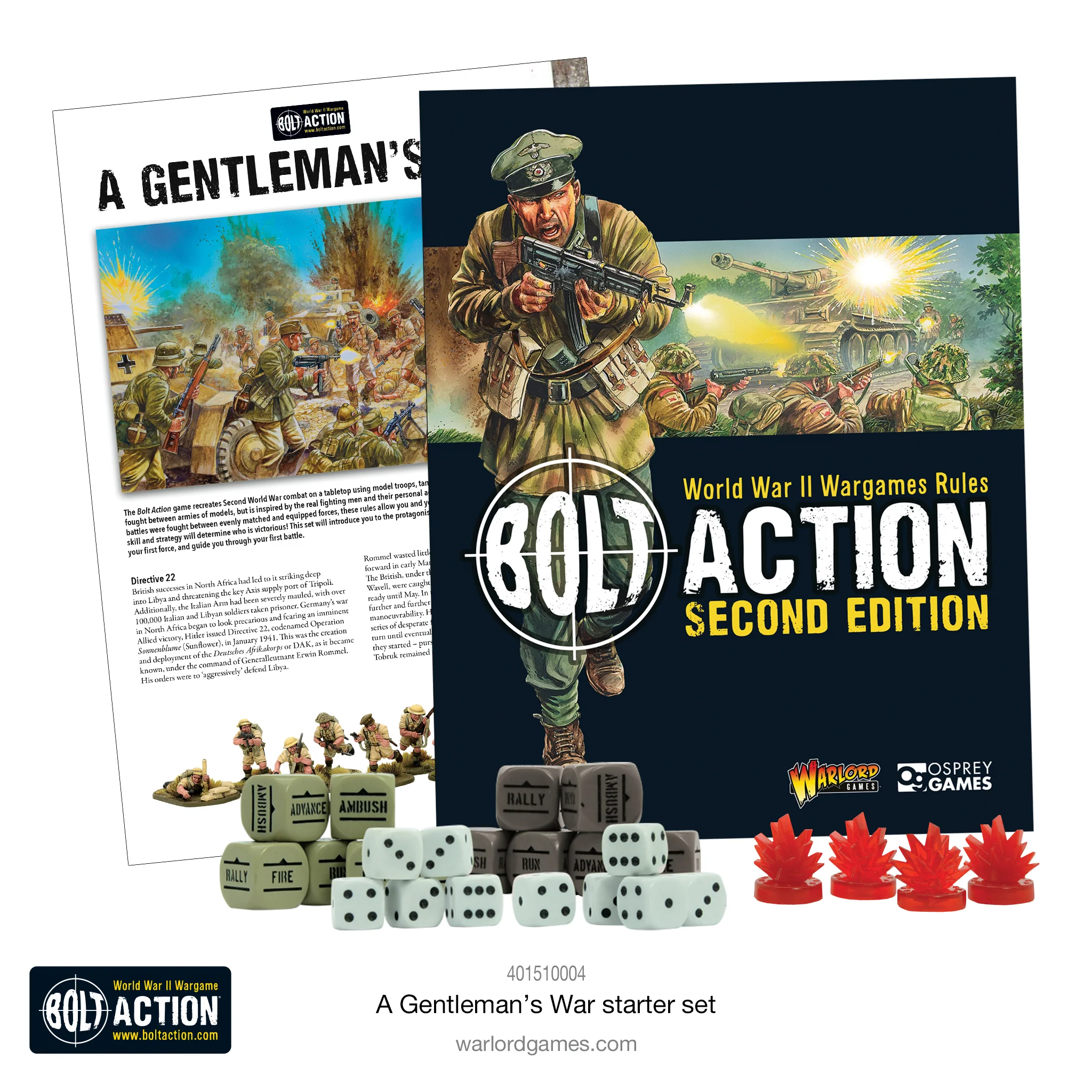 A Gentleman's War focuses on the action fought across the parched, dusty campaign in the Western Desert during World War II. This Bolt Action starter set pits the forces of the British 8th Army (more commonly known as The Desert Rats) against their Axis foes, the German Deutsche Afrika Korps. Although the fighting in this theatre was intense it tended to lack the fanaticism and atrocities seen in other theatres of the war and became known as a gentleman's war.