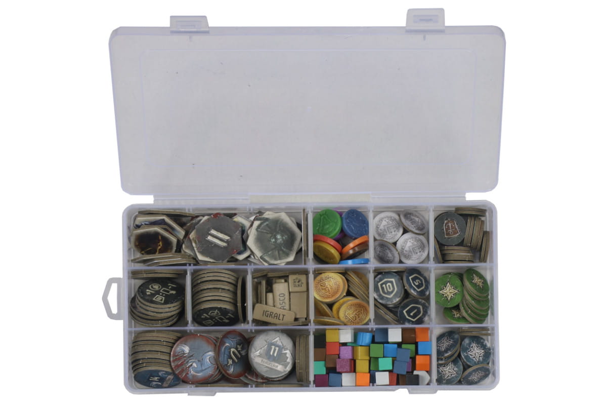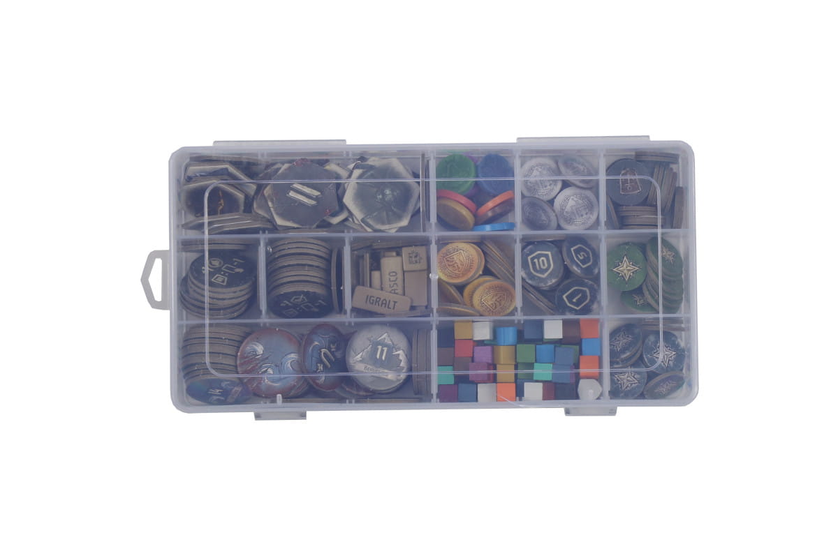 Bei dem vorgestellten Produkt handelt es sich um eine Plastikbox für Token und Marker aus der Alten Welt von Witcher.
