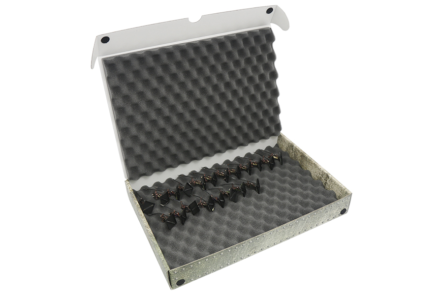Dieses Produkt ist eine Standardbox in voller Größe mit gewellten Schaumstoffeinlagen, ideal für die Aufbewahrung und den Transport von Miniaturen auf 20mm- oder 25mm-Basen. Diese Lösung wird besonders für Miniaturen mit Speeren, Lanzen und Kavallerie-Modellen empfohlen.