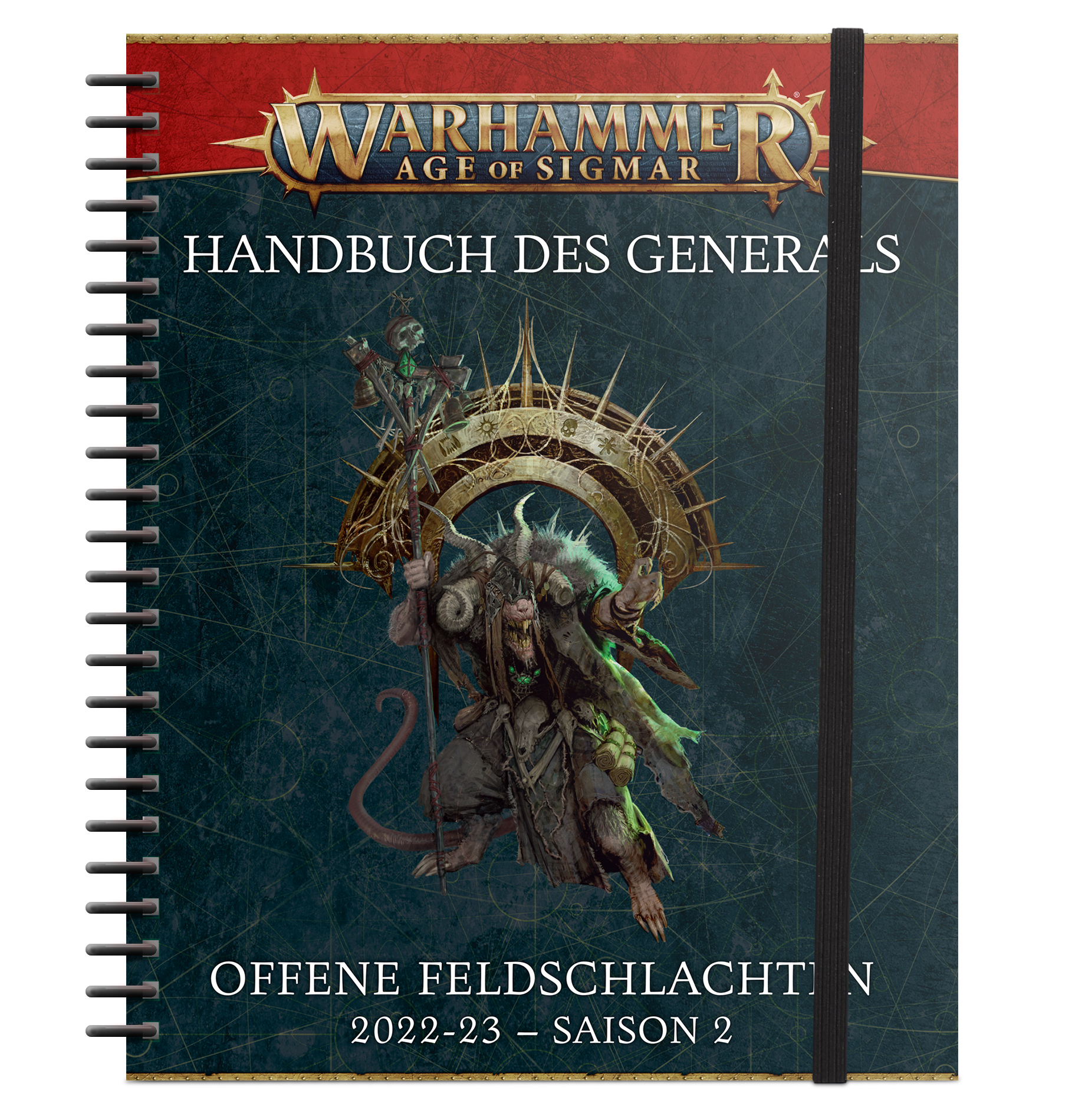 Warhammer Age of Sigmar: Handbuch des Generals 2024-25Die Reiche der Sterblichen stehen am Rande des Abgrunds. Unheilvolles Warpfeuer brennt tiefe Narben in das Land, und Orte, die der völligen Vernichtung entgehen, sind von unersättlichem Ungeziefer überrannt. Es wird gemunkelt, dass das Zweite Zeitalter des Chaos seinen Anfang genommen hat. Inmitten dieser Dunkelheit gibt es nur wenige Anführer, deren Mut stark genug ist, um die zersplitterten und ängstlichen Völker der Reiche zu vereinen. Bist du bereit, in dieser Zeit der Verzweiflung als unerschütterlicher Befehlshaber aufzutreten?Warhammer Age of Sigmar: Handbuch des Generals 2024-25 bietet dir alle Werkzeuge, um in ausgeglichenen Spielen Ruhm auf den Schlachtfeldern der Reiche der Sterblichen zu erlangen. Hier trittst du gegen andere Befehlshaber an, wo Geschick und Taktik über Sieg oder Niederlage entscheiden.Inhalt des HandbuchsDieses 112-seitige Hardcover-Buch mit praktischer Spiralbindung enthält alles, was du für die Saison 2024-25 benötigst:Aktuelle Hintergrundinformationen: Ein Überblick über die jüngsten erzählerischen Ereignisse in den Reichen der Sterblichen, der dich auf den neuesten Stand der epischen Kriege bringt.Regeln für ausgewogenes Spiel: Die vollständigen Regeln für die Saison 2024-25, einschließlich 3x Leibwachen-Regeln und 6x allgemeiner taktischer Vorhaben, die jede Fraktion einsetzen kann. Zusätzlich gibt es taktische Vorhaben, die den Großen Bündnissen vorbehalten sind.Turnierwertungsbogen: Ein leerer Bogen, um deine Siegespunkte, taktischen Vorhaben und andere wichtige Informationen während deiner Schlachten festzuhalten.12 Schlachtpläne: Für die Saison 2024-25, mit detaillierten Karten, auf denen die Position der Missionsziele und die passenden Geländetypen dargestellt sind. Jeder Schlachtplan wird auf einer Doppelseite präsentiert, sodass das Buch platzsparend gefaltet und dennoch leicht zugänglich bleibt.Turnierorganisationsleitfaden: Ein nützlicher Leitfaden für all jene, die Turniere für Warhammer Age of Sigmar organisieren möchten. Inklusive einer Eventübersicht als Beispiel.Aktualisierte Endloszauberschriftrollen: Neue Manifestationslehren für Endloszauber, die von Zauberern jeder Fraktion eingesetzt werden können.Grundregeln von Warhammer Age of Sigmar: Diese sind vollständig abgedruckt, um jederzeit als Nachschlagewerk zur Verfügung zu stehen. Ein ausführliches Regelglossar ist ebenfalls enthalten.Fortgeschrittene Regeln: Hier findest du Regeln für das ausgewogene Spiel, darunter Befehle, Geländeregeln, Magie, Armeezusammenstellung, Kommandomodelle und taktische Vorhaben.Citadel-Geländeliste: Eine vollständige Liste der Citadel-Geländetypen, mit Angaben zu den zu verwendenden Geländestücken und deren Anzahl.Das Buch hat eine Größe von 161 mm x 210 mm und verfügt über ein praktisches elastisches Band, damit du während der Schlacht immer schnell die richtige Seite findest.Exklusiver Zusatz für Skavenflut-BesitzerFür Spieler und Spielerinnen, die bereits die Warhammer Age of Sigmar: Skavenflut-Box erworben haben, bietet dieses Buchformat zusätzliches Material, darunter die neuen Endloszauber und deren Regeln, in einem handlichen Format, das perfekt für die Schlachtfeldvorbereitung ist.Erhebe dein Banner, Befehlshaber, und führe deine Armeen durch die Flammen und Dunkelheit, die die Reiche der Sterblichen heimsuchen!