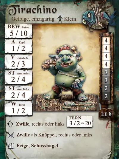 - Tirachino, einzigartiges Gefolge für Goblins, Heuer 45 Dublonen