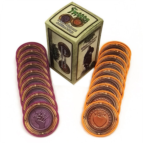 Pokerchips als Ressourcenmarker für Coups und Ideen, Hex-Punkte und Segnungen, erfreuen sich nach wie vor großer Beliebtheit. Mit Rage und Ambition kommen nun zwei Ressourcen für den Hexenjäger dazu. Rage kann ähnlich angewendet werden wie Segnungen, ist aber nicht durch Verderbnis limitiert. Ambition kann dazu verwendet werden, zwei HeXXenwürfel neu zu würfeln. Wer als Hexenjäger etwas auf sich hält, benutzt diese griffigen, großen Chips in hochwertiger Aufmachung und Optik. Jedes Set enthält 10 Rage-Chips und 10 Ambitions-Chips.
