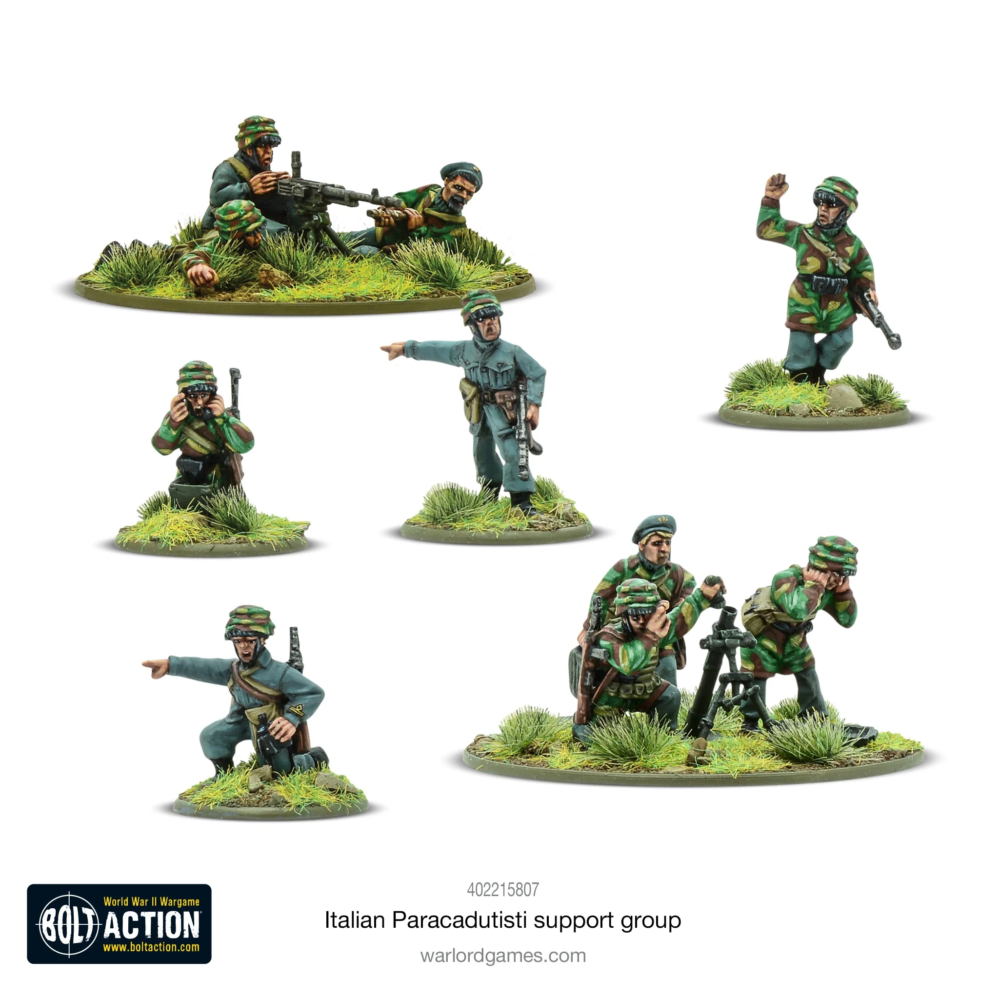 Wie ihre Kameraden des Regio Esercito (Königlich Italienisches Heer) nutzten die Fallschirmjäger intensiv das Breda 37 Mittlere Maschinengewehr sowie den Mortaio da 81/14 Modello 35 81-mm-Mörser für Feuerunterstützung im Nahbereich.
