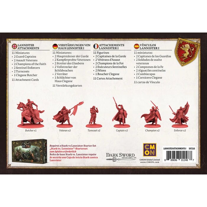 Das Lannister Attachment #1 Boxset für das A Song of Ice & Fire: Tabletop Miniaturenspiel beihnaltet 11 neue Miniaturen mit dem Spieler ihre Armee zu individualisieren.