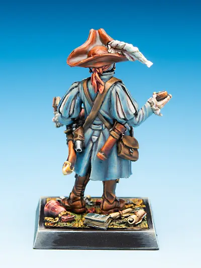 Der Resin-Figur liegen die Charakterkarten mit allen für Freebooter’s Fate benötigten Spielwerten bei.