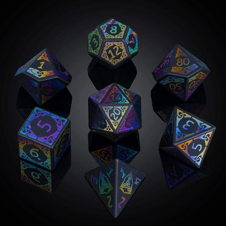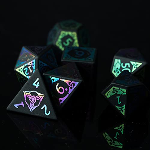 HOCHWERTIGE HANDARBEIT – Jedes der 60g schweren Würfel wurde in sorgfältiger Handarbeit geschliffen und mit regenbogenfarbenen Ziffern und kunstvollen Verzierungen versehen. Sie bieten nicht nur ein faszinierendes Aussehen, sondern sind auch robust und stabil. Um die Würfel zu schonen, empfehlen wir die Verwendung einer weichen Würfelunterlage.