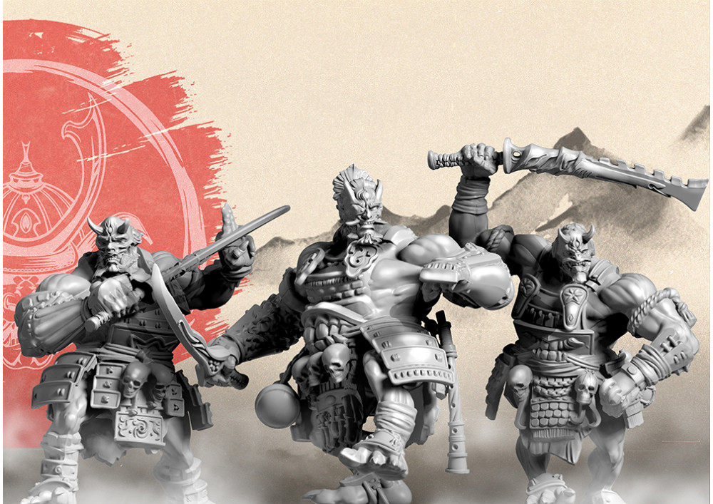 Mit einer Größe von über 7 Fuß sind die Oni ein furchterregender Anblick. Ihre mächtigen Körper sind zu unglaublichen Heldentaten der Stärke und Wildheit fähig, die dem Reich entsprechen, aus dem sie stammen. Während diese explosive Kraft meistens hinter den strengen Codes der Bushi und seiner Erleuchtung gezähmt wird, kümmert es diejenigen, die den Weg des Akuma gehen, wenig um solche Beschränkungen. Diese mächtigen Krieger haben das Paradies nach einer Ewigkeit des Leidens und der Opfer erreicht und schwelgen nun darin. Ihre Disziplin hat dem Impulsivismus Platz gemacht, ihr strenger Ehrenkodex ist zu einem Weg der persönlichen Entdeckung und Selbstbefriedigung geworden. Ihre wilde, ungezähmte Natur macht sie zu einer wertvollen Waffe auf dem Schlachtfeld, wo ihre Wildheit und Aggression glänzen.
