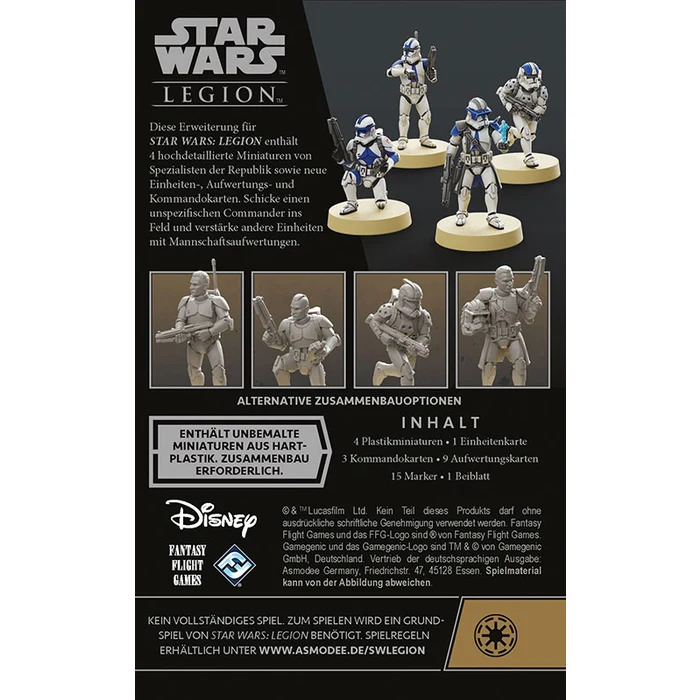 Während Jedi-Generäle wie Anakin Skywalker die Große Armee der Republik in die Schlacht führen, sorgen Klontruppen dafür, dass die Kämpfe mit maximaler Effizienz geführt werden. Einige Klone kombinieren die Waffenfertigkeit mit einer weiteren speziellen Ausbildung in Bereichen wie Kommunikation und Technik, um die Operationen der Republik vor Ort zu unterstützen.