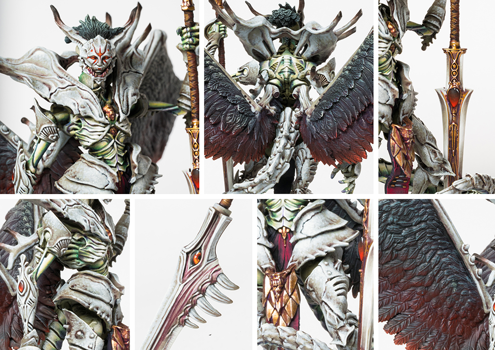 Die geflügelte Hubris, modelliert von Michael Kontraros, kann als Lineage Highborne für die Spires eingesetzt werden. Sie eignet sich sowohl als offensiver Anführer an der Front als auch als flexible Unterstützungsoption aus der zweiten Reihe. In Kombination mit Avatara- und Sentinel-Regimentern oder zur Feuerunterstützung neben Leonine Avatara lässt sich der Lineage Highborne gezielt an deinen Spielstil anpassen und stärkt die taktischen Möglichkeiten deiner Spires-Armee spürbar.