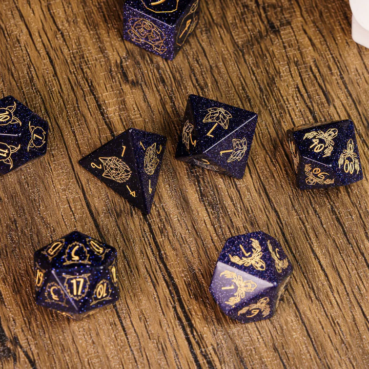 Gefertigt aus Schmuckstein und von Hand geschliffen sowie poliert, bieten die Würfel nicht nur optischen, sondern auch haptischen Luxus.