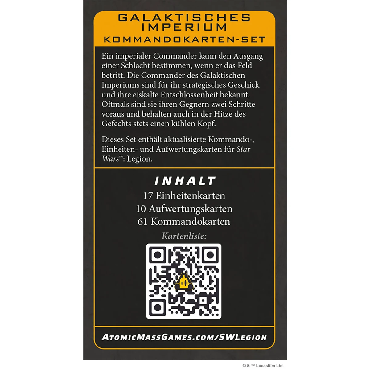 Artikel: "Star Wars: Legion – Galaktisches Imperium Kommandokarten-Set"