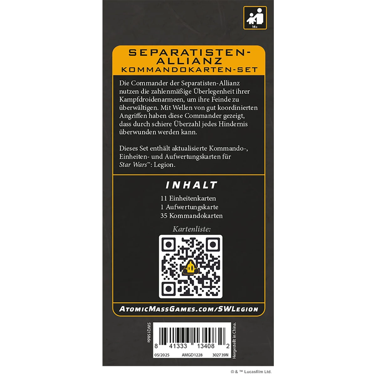 Enthält 35 Kommando-, 11 Einheiten- und 1 Aufwertungskarte für zuvor veröffentlichte Commander der Separatisten-Allianz