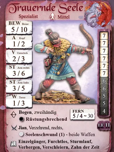Der Figur liegt die Charakterkarte mit allen für Freebooter’s Fate benötigten Spielwerten bei. Die Metall-Figur wird unbemalt und in Einzelteilen geliefert und muss noch zusammengebaut werden.