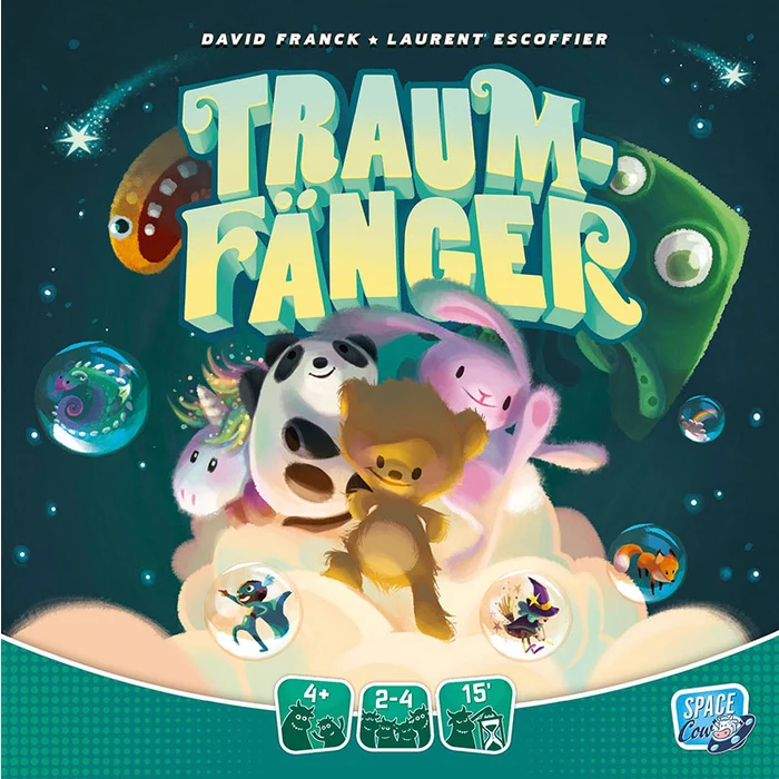 Mit Albträumen ist nicht zu spaßen! Zum Glück habt ihr bei Traumfänger eure Kuscheltiere dabei. Sie verwandeln böse Träume in schöne Geschichten. Schätzt die Größe des Albtraumes und wählt das passende Kuscheltier aus, das den Albtraum vollständig abdecken kann. Wenn vom Albtraum unter dem Kuscheltier nichts mehr zu sehen ist, gewinnt ihr Traum-Plättchen, die ihr in eurem Wolkenbett sammelt und mit denen ihr süße Träume nacherzählen könnt.