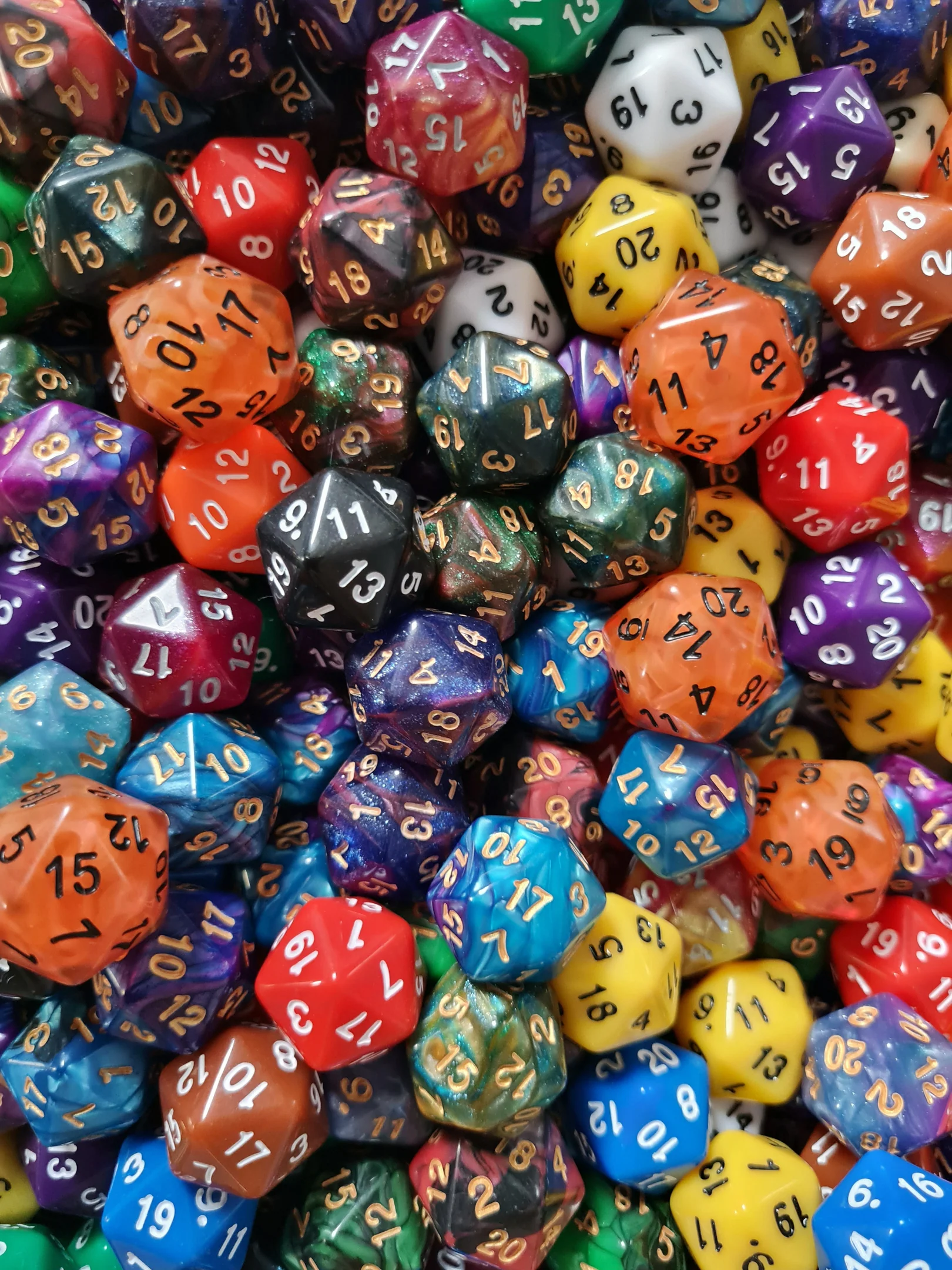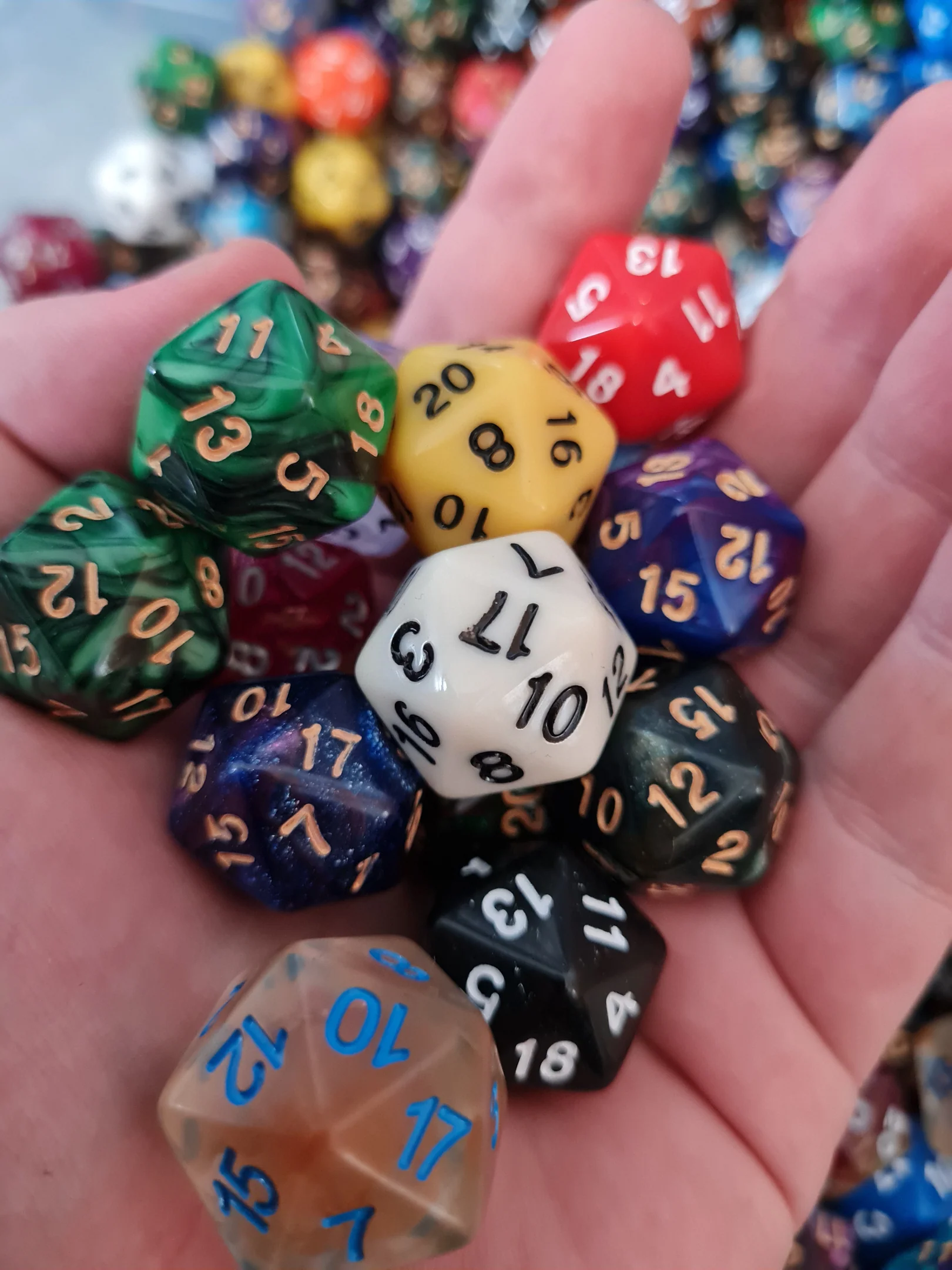Bitte beachte: Du erhältst eine bunte Auswahl an polyedrischen W20-Würfeln. Die tatsächlich gelieferten Würfel können leicht von den abgebildeten Varianten abweichen, sodass jede Bestellung eine kleine Überraschung bietet. Bei größeren Mengen kann es vorkommen, dass doppelte oder dreifache Exemplare enthalten sind. Es handelt sich hierbei immer um einen einzelnen Würfel, der deinem Spiel eine zusätzliche Farbnuance und Persönlichkeit verleiht!